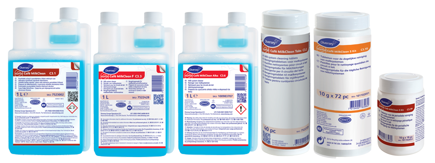 Liquid and tablet cleaner for your milk systems of coffee and espresso equipment. Suitable for use on automatic milk frothers, manual steam wands, milk pitchers and milk systems in automatic espresso machines. Available in phosphate-free formulations.