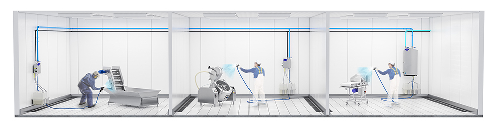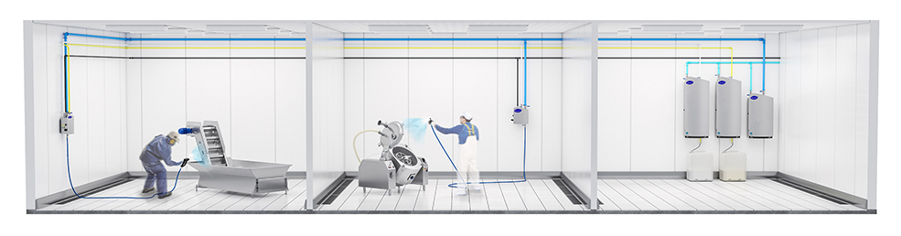 We have a full range of open plant cleaning equipment to deliver optimum distribution, dilution and application of foam detergents, disinfectants and rinsing around your facility. Our solutions have been hygienically designed and can be selected to satisfy specific site and budget requirements.