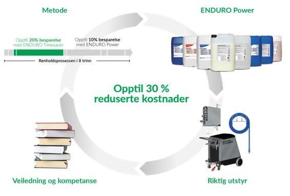 Lilleborg har som den eneste leverandøren av renholdstjenester klart å utvikle et nytt renholdskonsept som bidrar positivt inn i verdiskapningen til våre kunder. EnduroPower senker dine renholdskostnader samtidig som vi ivaretar eller forbedrer hygieneresultatene.